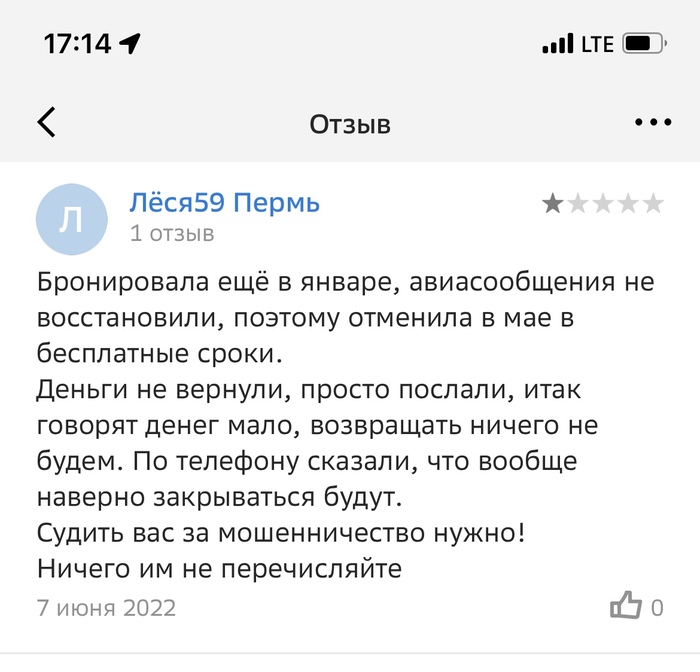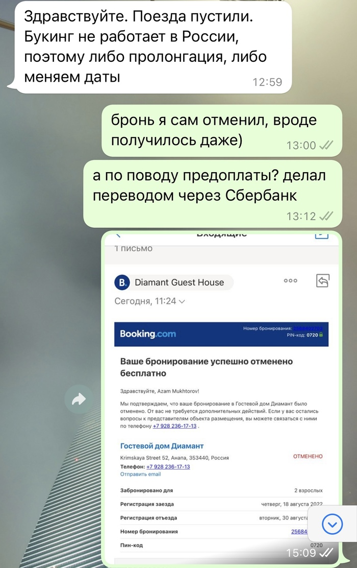 Утром проснулись и были немного в шоке от новостей, но решили выжидать, ведь отпуск был только в августе и верили, что всё уляжется в короткие сроки. И вот сегодня приходит уведомление от Utair, что рейсы отмены и можно сделать возврат средств. Заявление составил и отправил. Вспомнил про гостевой домик и написал им, на что они ответили:
