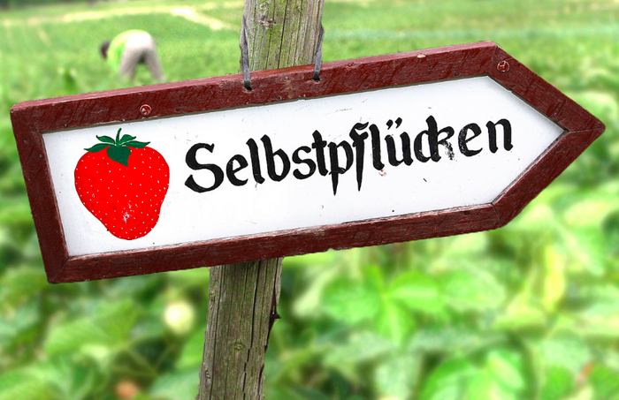 В сезон (у нас с середины мая по середину июня) на дорогах появляются указатели на поля клубники типа таких: