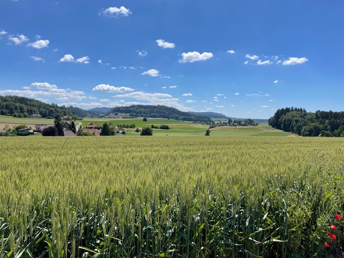 Следуя которым попадаешь, собственно, на поле. Там стоит будка, в которой специально обученный человек взвешивает тару, а потом собранный тобой урожай. Цена указывается за килограмм. Сегодня тут кило самостоятельно собранной клубники стоил 6 шв.франков.