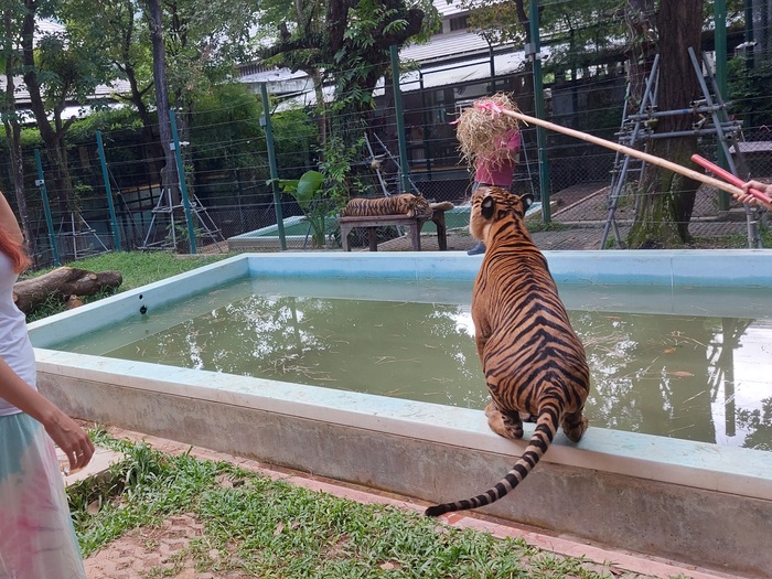 В клетки можно заходить только если ты выше 145см, если ниже или ребёнок - то только к тигрятам(на момент посещения они были недоступны)