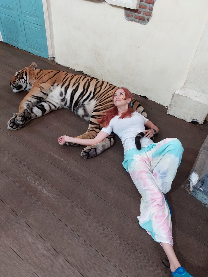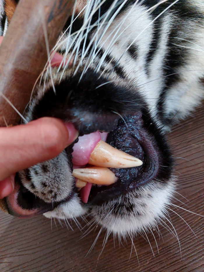 Да, кстати, тигры, видимо, не вылизываются, руки после них пришлось отмывать и кожа чесалась пару дней.