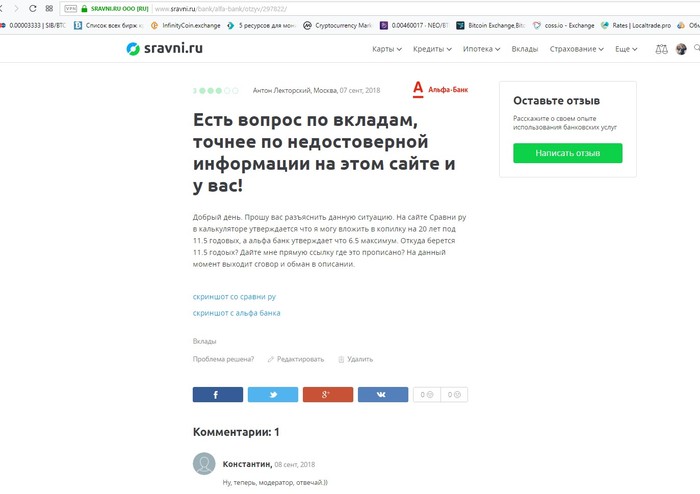 Так же альфа банк и сравни ру не очень хотят похоже отвечать на неудобный вопрос, может тут расшевеляться.