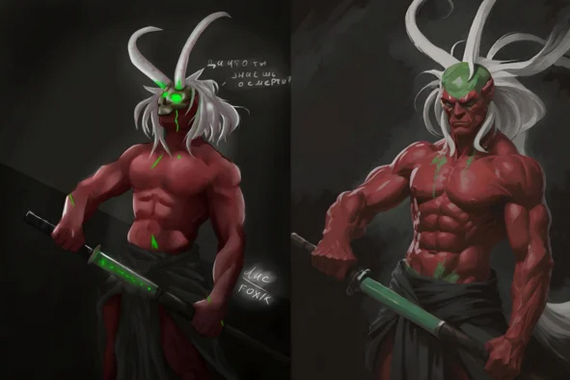 Нейросеть почти полностью сохранила основную идею картинки, превратив рога в волосы, а маску смешав с лицом.