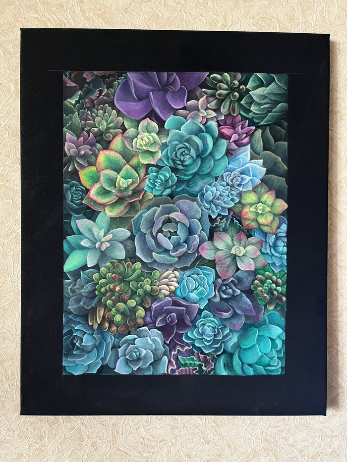 Как-то раз увидела я в пинтерест красивую фотографию с кучей суккулентов. Они манили. Я смотрела на фотографию, а в ушах звучало: «Нарисуй! Красиво будет! Тут перьев нет, чешуек нет! Карандашом раз, раз, кисточкой ещё пару раз и будет тебе счастье!»