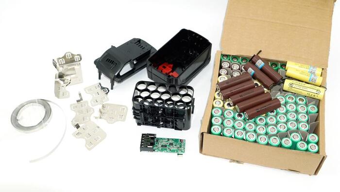 Выше я говорил, что если не уверены в качестве покупных батарей, то проще собрать самому. Это тоже не сложно, если брать готовые комплекты для сборки - совместимые корпуса для вашего типа инструмента, с набором пластин для сварки и с платой зарядки-балансировки. Понадобится сам корпус (набор), точечная сварка и литиевые ячейки-аккумуляторы.