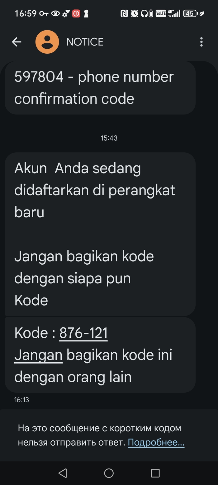 С индонезийского "Ваша учетная запись регистрируется на новом устройстве.