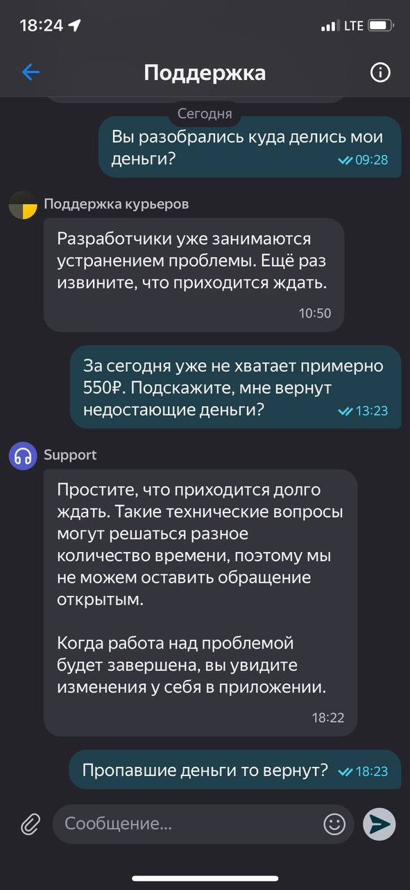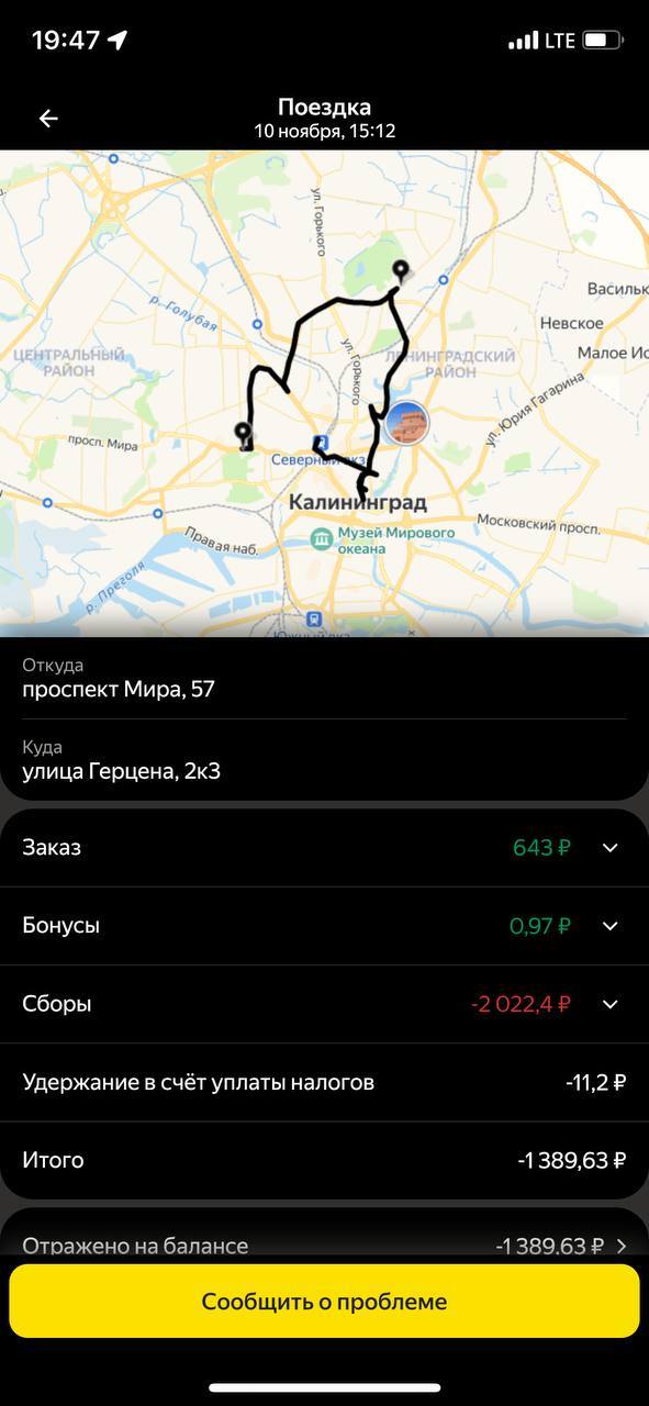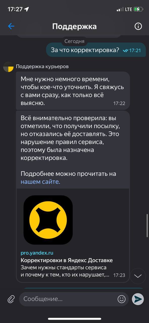 Всё, казалось, разрешилось. Однако во время выполнения следующего заказа я обнаружил, что на счету в разделе «Деньги» почти ноль. Вся сегодняшняя выручка была списана. В чате поддержки этот акт назвали «корректировкой».