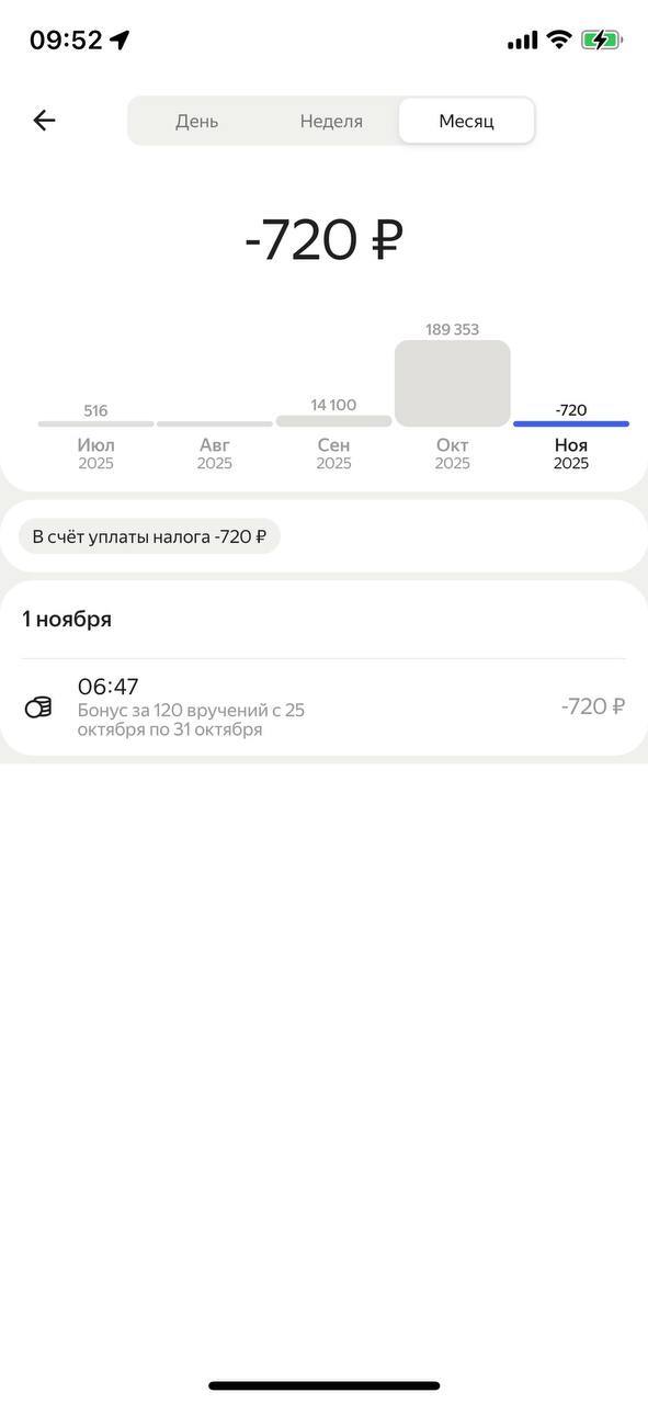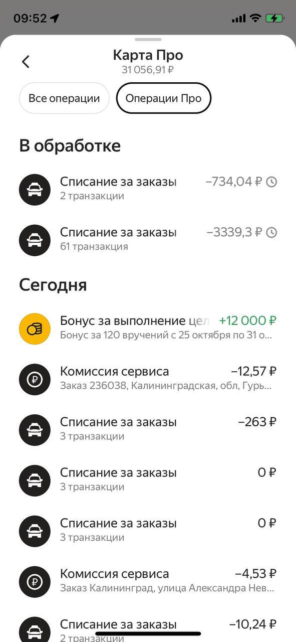 Всё началось 28 октября 2025 года. После исчерпания месячного лимита в 200 000 рублей на карте «Яндекс Про» я заметил, что выплаты за заказы стали приходить не в полном объёме. Систематически недоплачивали 10-15%, хотя в приложении статус заказа гласил: «Всё выплачено».