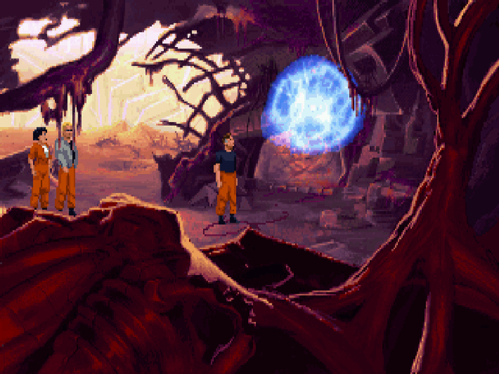 Позже Спилберг заинтересовался успехом приключенческой игры по мотивам «Индианы Джонса и Последнего крестового похода», и тогда было решено, что The Dig станет компьютерной игрой. Разработка оказалась самой долгой в истории LucasArts. Первое обсуждение прошло еще в 1989 году на ранчо Джорджа Лукаса, а релиз состоялся только в 1995-м. За это время проект пережил множество изменений: разработчики отказались от элементов ролевой системы и механик выживания, несколько раз менялись руководители и сценарные акценты. Одна из версий получилась особенно мрачной и жестокой, с эпизодами вроде смерти от кислоты, и именно она понравилась Спилбергу. Но после жалоб родителей маленьких зрителей на излишнюю жестокость «Парка юрского периода» режиссер настоял на смягчении подобных сцен.