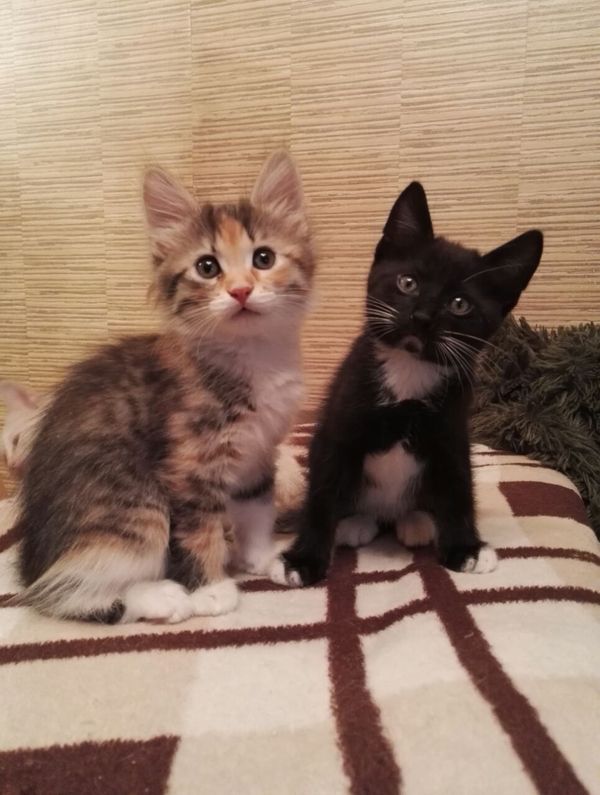 Отдаем кискиных детей,родились 14.09,ребята активные, игривые, по мимо сиски едят уже корм для котят и делают свои великие кошачьи дела в лоток! И это в 1,5 месяца,далеко пойдут!белая и трехцветная -девочки и черный-котик, мама полутайская кошка,а папа-рыжий благородный красавец !у черного оч красивый цвет глаз! Серо-зеленый с темной окантовкой,у трехцветной зеленые папкины глаза,а белая тайского окраса с голубыми небесными глазами,не поменяются,у мамы такие же голубущие! У нас больше не будет котят,т.к. кота....того...чик чик...а у черного на пузе белый окрас в виде трех буквенного слова,вернее его символа =)