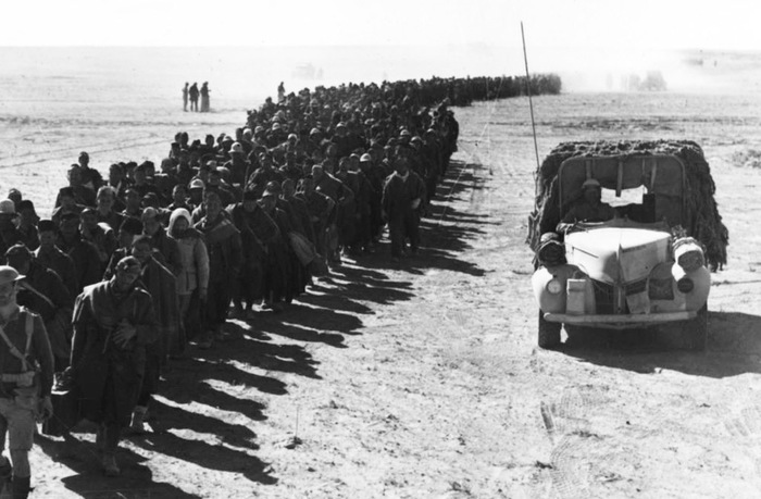 Колонна итальянских военнопленных, захваченных по время операции "Компас". 1941 год.