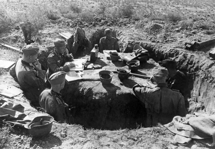Немецкие командиры совещаются на командном пункте под Сталинградом. сентябрь-октябрь 1942