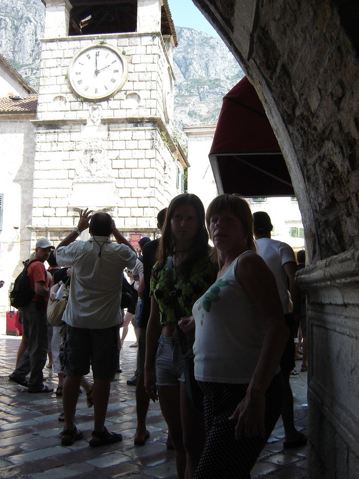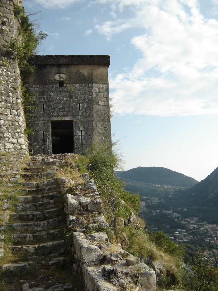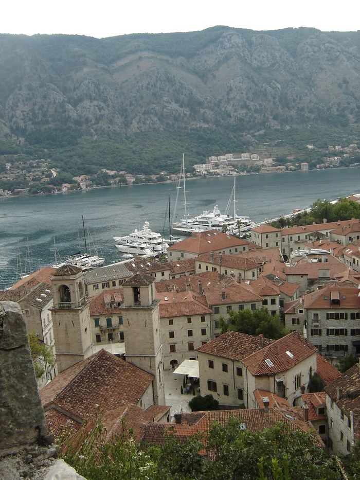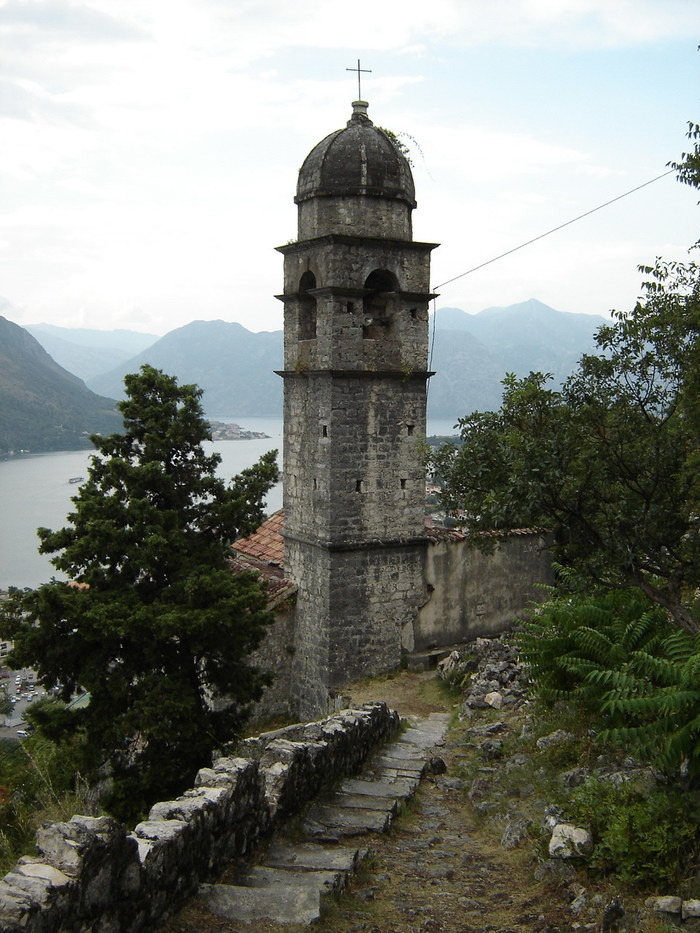 Конечно вышли в сам город Котор. Над городом есть крепость. Туда надо подниматься по тропинкам и лестницам. Высоко. Саша до флага доходил, ну а я только до церкви доползла.