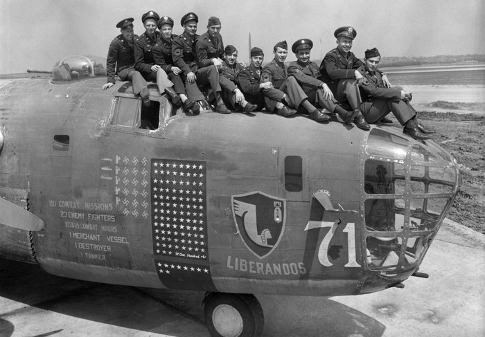 Этот самолет носил собственное имя «Blue Streak». Экипаж позирует на носу самолета во время своего визита на завод Форт-Уорт в Convair. Самолет выполнил 110 боевых вылетов и в итоге был отправлен в тур по США. Как утверждается в источнике, за время выполнения этих миссий не было потеряно ни одного члена экипажа, но было заменено 19 двигателей, два крыла, руль и "множество алюминиевых планок". Экипаж уничтожил один танкер, эскадренный миноносец, торговое судно и 23 самолета противника.