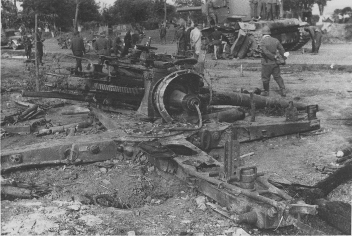 Уничтоженная у Дубно немецкая 88-мм зенитная пушка Flak 18. СССР. Украина. июнь 1941