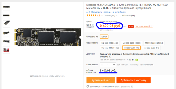 Заказывал в чёрную пятницу SSD 1 Tb себе для ноута. Не то, чтобы я был поклонником всяких распродаж, скорее, по времени совпало и, понятное дело, куплю по адекватной цене.