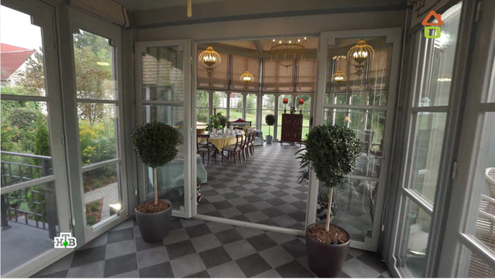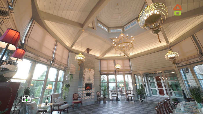 В итоге команда НТВ построила целый «павильон» и соединила его с домом, прорубив одну из стен. На веранде появился балкон, танцевальный зал, столовая, печь, высокие окна и диваны.Также на даче предусмотрели систему умного дома — семья Захаровой сможет регулировать температуру пола, дистанционно открывать окна и включать свет со смартфона.