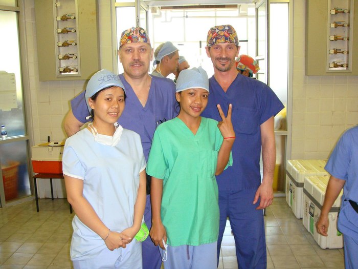 Операционная работа довольно рутинная. Я не могу сказать, что за мой многолетний опыт мне попадались исключительные случаи, которые особенно запомнились. Есть некое территориальное деление, например, в Африке много новообразований, в Камбодже и Вьетнаме преобладают термальные поражения. Вообще наша основная специализация – врожденные дефекты челюстно-лицевой области, которые в народе называются «заячья губа», «волчья пасть» (расщелина нёба). Еще один важный момент – работа выстраивается таким образом, чтобы мы могли в полном объеме обеспечить медицинскую помощь за один раз. Например, если мы пересадим человеку лоскут, который необходимо через две недели отсечь, то ничего хорошего из этого не выйдет – он уедет домой и второй этап операции не будет проведен. Поэтому для нас важно максимально помочь человеку за одну операцию, если, конечно, это возможно.