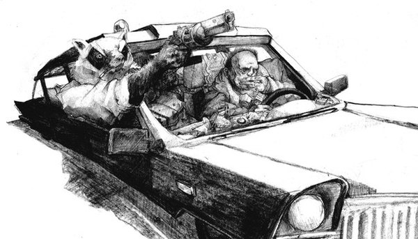 Наблюдать за ним очень интересно, он рисует как одержимый, а рисунки выходят из под его руки как из принтера. Его зовут Глеб Пушев. Картины его выходят очень атмосферными и детализированными и как вы можете заметить ему очень нравятся изображать антропоморфных енотов. Для некоторых картин нужно действительно очень острое зрение.=)