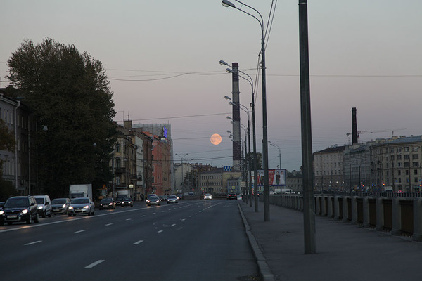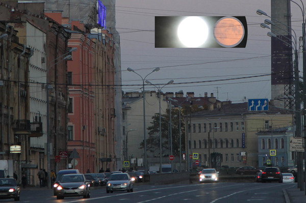 Неожиданно. Контур ночной Луны оказался больше, а вечерняя еще и сплющенная какая-то!