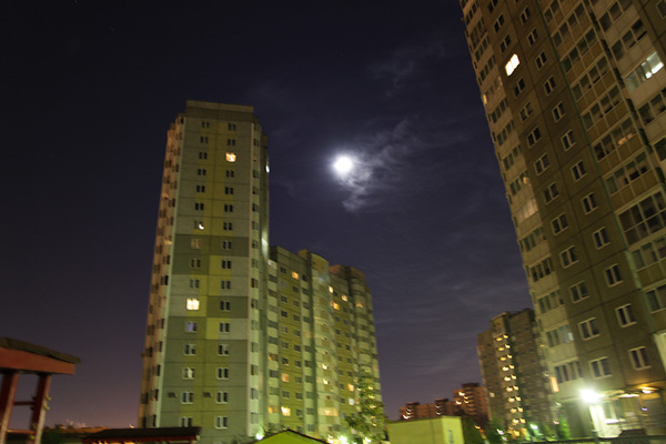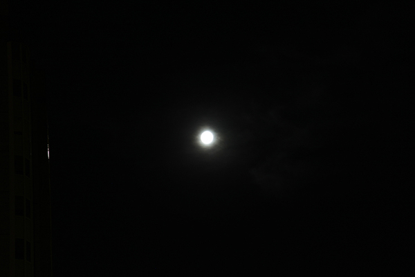 Ну, так и есть. Луна в зените не впечатляет совсем. Правда, эта фотография не показательна. Тут фокусное расстояние было 24мм. Но ощущение знакомое - обычная маленькая Луна.
