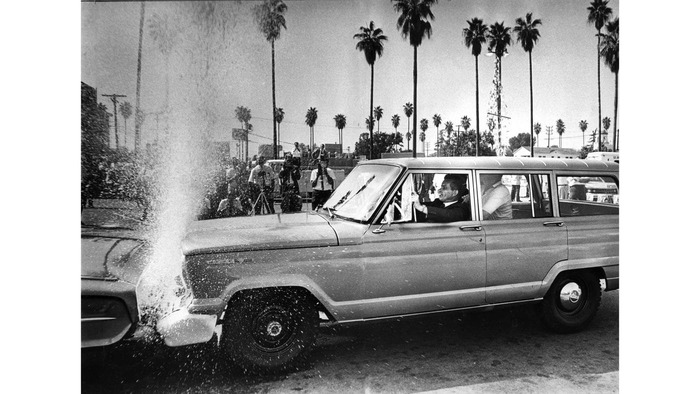 Бамперы, наполненные водой, были продемонстрированы во вторник в районе Van Nuys, присутствовало 100 зрителей. Производитель Rich's Soft Cushion Bumper Co. из Sacramento говорит, что устройства используются несколькими полицейскими подразделениями, флотом Valley Cab Co. из 50 автомобилей и многочисленными частными клиентами. Мягкий бампер, наполненный водой, поглощает воздействие удара автомобиля, движущегося со скоростью до 35 км/час.