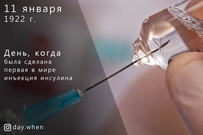 11 января 1922 г. была сделана впервые в мире инъекция инсулина подростку, который страдал сахарным диабетом.