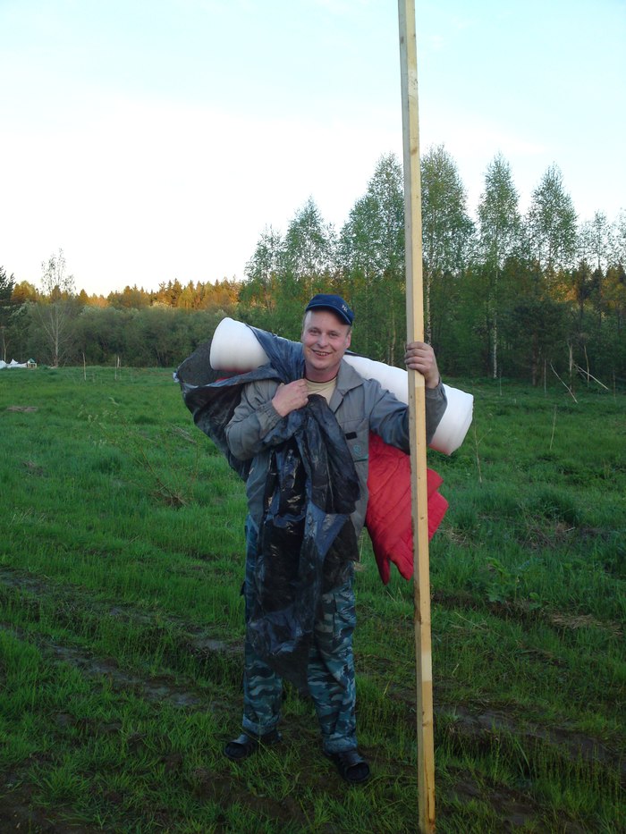 Так как плот, по плану, намечался приличных размеров, у нас появилась возможность набрать всякого барахла для комфортного отдыха, что мы и не преминули сделать. Взяли с собой небольшую палатку, утеплитель и одеяло под неё, мангал, дрова и икеевский столик. Вкупе с мешками и досками (материалы для самого плота) получилась солидная куча вещей, доставить до берега которую мы намеревались на Газели друга. Собраться смогли уже к вечеру, после работы, покидали всё в фургон и выдвинулись к река в 7 вечера. И... застряли не доехав до берега метров 50.