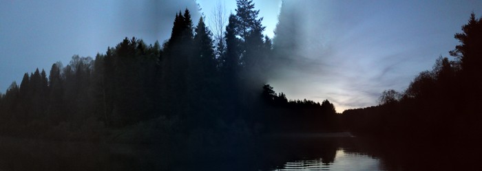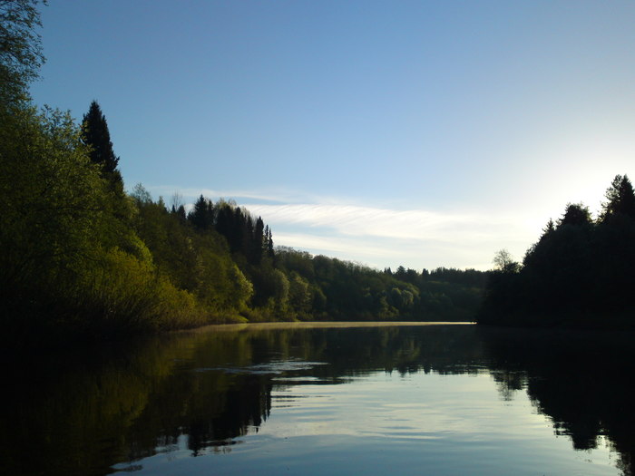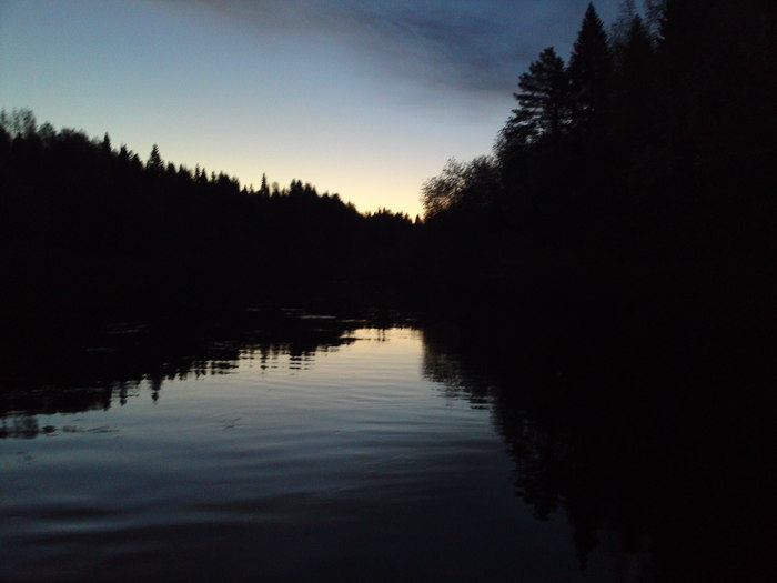Вдруг внезапно раздался резкий всплеск! Я подумал, что что-то с плота спихнули в воду, но нет, это оказались ночные забавы любопытных бобров. Далее по маршруту мы постоянно слышали такие всплески метрах в 5-10 от плота, и пару раз видели в рассветных сумерках бобровью голову над водой, размером с голову средней собаки.