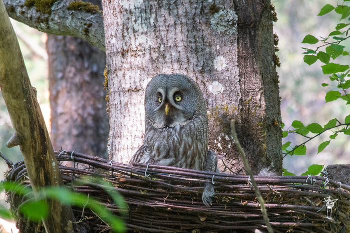 Бородатая неясыть на гнезде