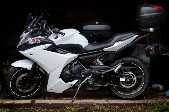 И вот мотошкола на крытой площадке окончена, я в ожидании экзаменов в этом январе, а мотоцикл уже куплен и ждет меня на зимовке. Встречайте, Yamaha JX6 Diversion 2011 г.в.!