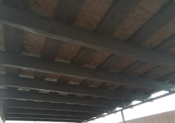 Крыша подъезжает неспеша... обрешетка 150х25 + лист ОСП + профлист