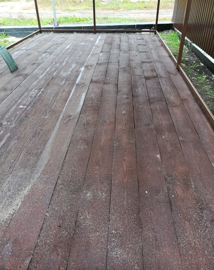 Теперь очередь за полами... доска 150х25 и все тот же "пинотекс"