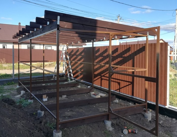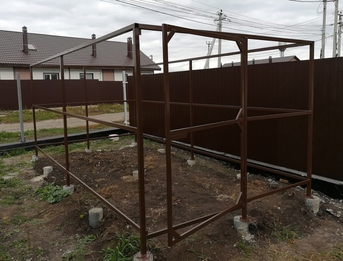 Стойки труба профильная 40х40, горизонтальные 20х40, верхняя обвязка 40х40
