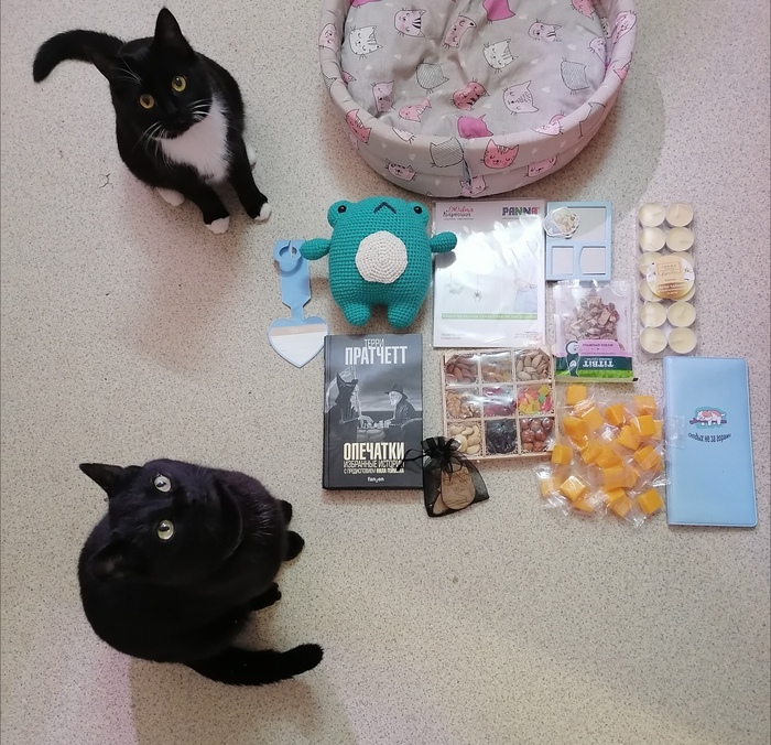 Потом я открыла пакетик и увидела там много всякого и интересного и котоинспекция тоже 🐾