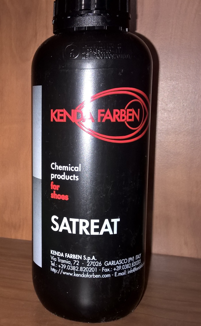 4. Дихлорамин. 100% будет в магазине обувных комплектующих. Дихлорамин и десмокол, как два брата с разными отцами. Клеить не обезжиренную резину или полиуретан практически не имеет смысла. Мы покупаем дихлорамин фирмы Kenda Farben, называется он Satreat. Жидкость неприятная на запах и хранится в стекле, либо специальной таре.