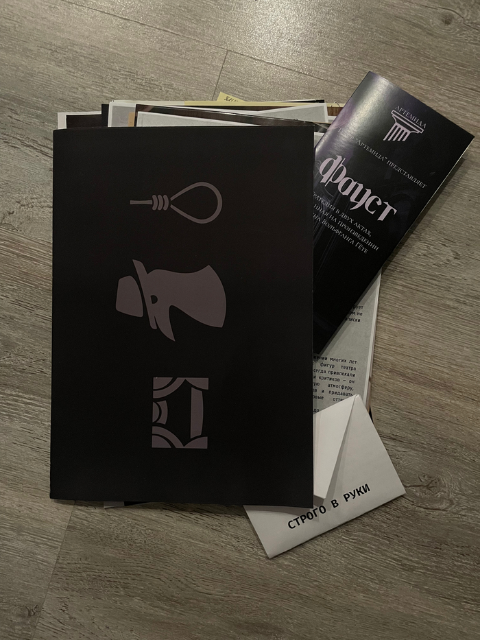 - всё на бумаге, никакого телефона не нужно (если хотите ещё больше атмосферы, то есть телеграм-бот, сайт театра, ...)