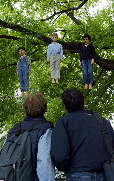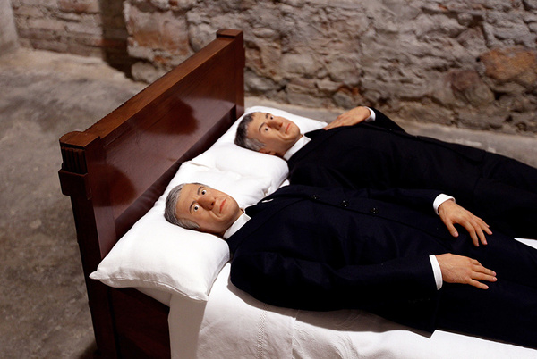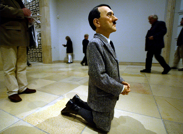 Одну из наиболее обсуждаемых и противоречивых современных скульптур — стоящего на коленях Адольфа Гитлера — продали на аукционе Christie's в Нью-Йорке за 17 миллионов долларов. Ее автор — 55-летний итальянский мастер Маурицио Каттелан. Работы художника часто оказывались в центре скандалов. К примеру, в 2000 году его «Час девятый» вызвал негодование польской общественности — скульптура изображает папу Римского, придавленного метеоритом. Предлагаем вашему вниманию самые резонансные произведения Каттелана.