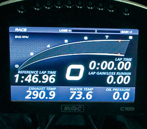 Панель приборов. За контролем параметров используется телеметрическая система MOTEC. Гонщику показывается только самая необходимая информация.