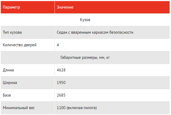 Автомобиль получился весьма лёгким — 1104 кг вместе с водителем и без топлива. Приходится докладывать балласт для увеличения веса до допустимого минимального значения 1100 кг.