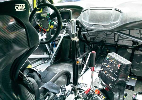 Салон гоночного автомобиля не похож на серийный. Тут даже кондиционер работает по особенному: охлаждает он только шлем гонщика. Справа находятся – консоль с тумблерами включения зажигания, запуска двигателя, управления стеклоочистителями и системы пожаротушения.