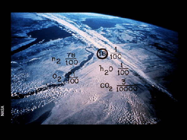 Схематически показанные атомы для ознакомления с элементным составом газов в нашей атмосфере.