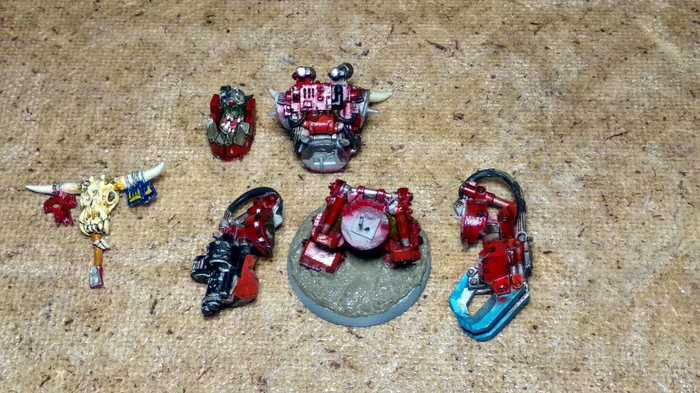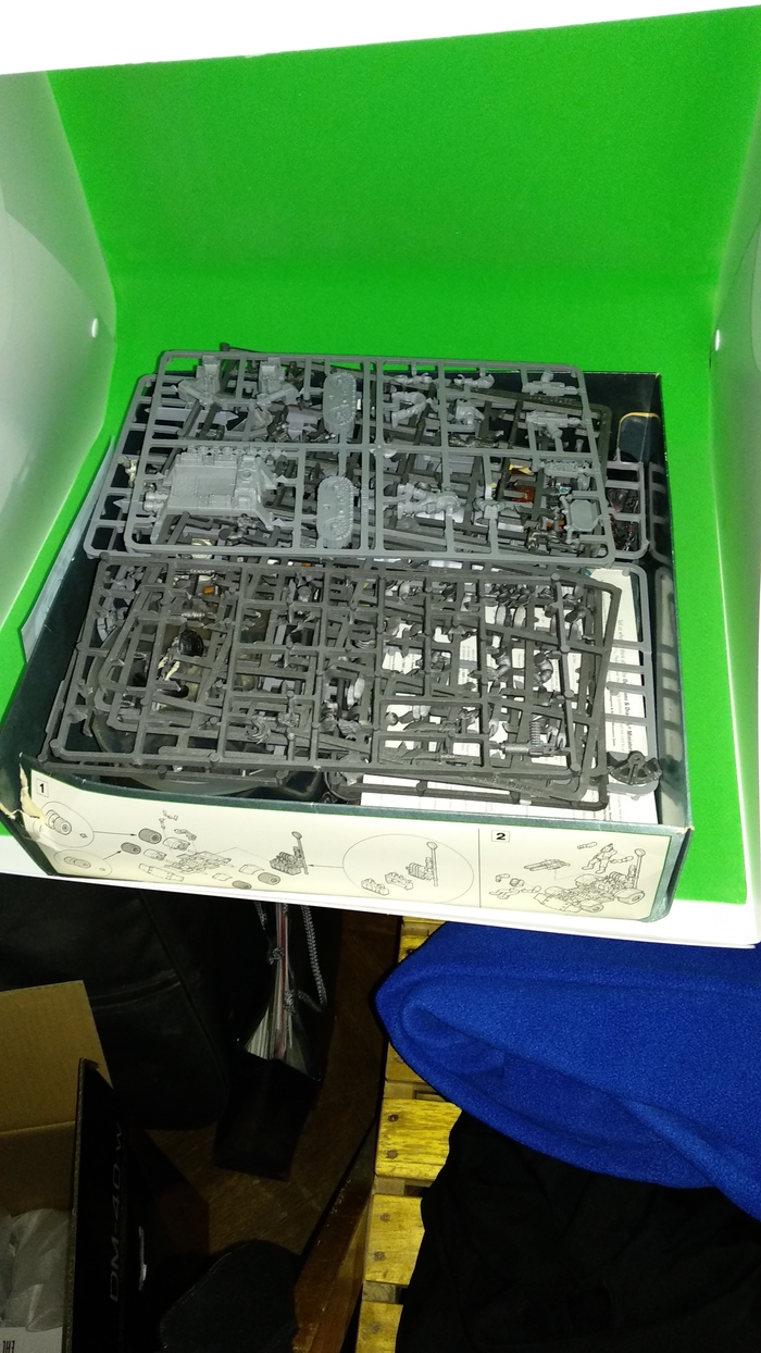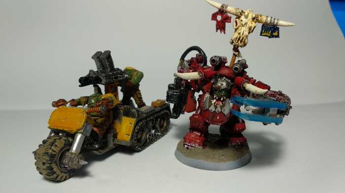 Коробка содержала неясное количество орков, некоторые склеенные, некоторые литники загрунтованные, некоторые фигурки прям металлические и разобранные, а некоторые разваливающиеся, потому что технологию не соблюдали. Так я стал счастливым (?) обладателем небольшого вааагха в составе варбосса, группы парней, нескольких байков, багги и трайков и абсолютного непонимания, что же с этим делать.
