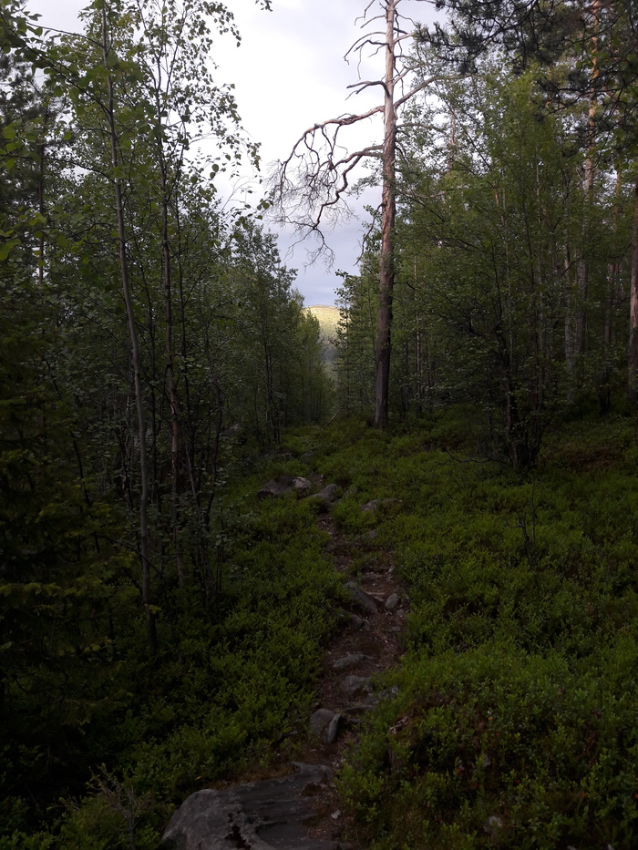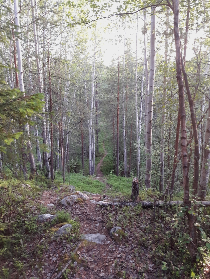 Около 20:30 мы начали свой путь от подвесного моста через реку Ниву, прошли «тропу здоровья» и свернули на тропинку, шедшую приблизительно в нужную нам сторону.