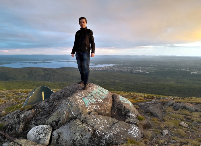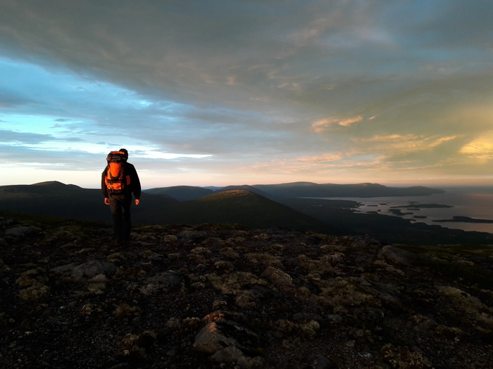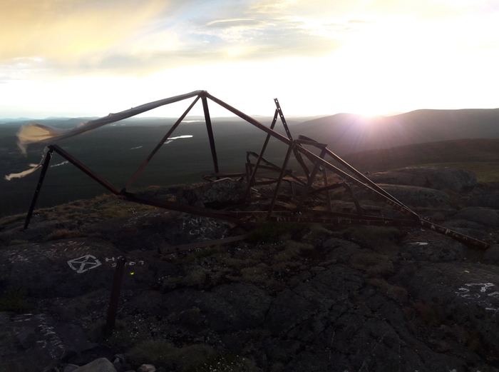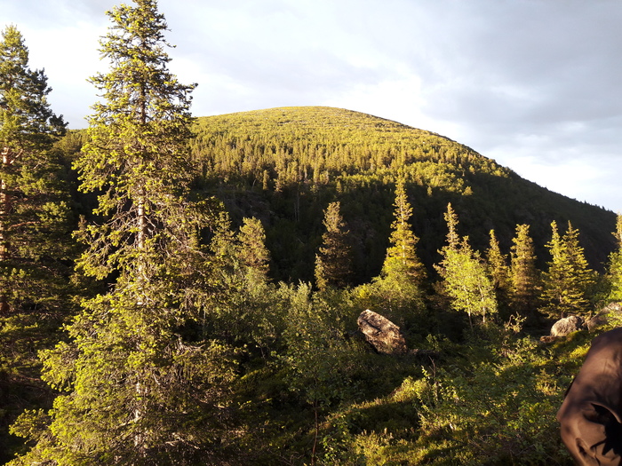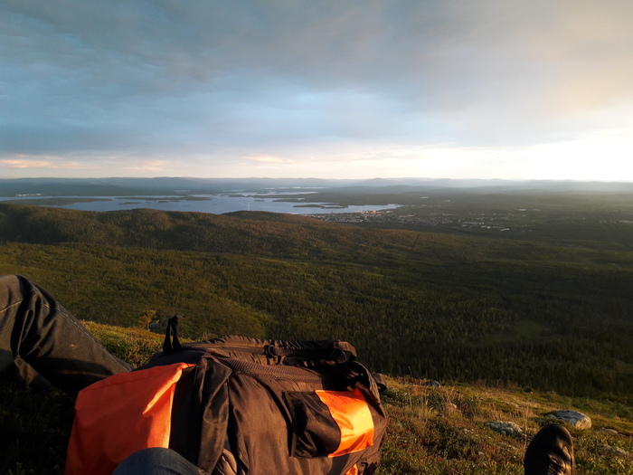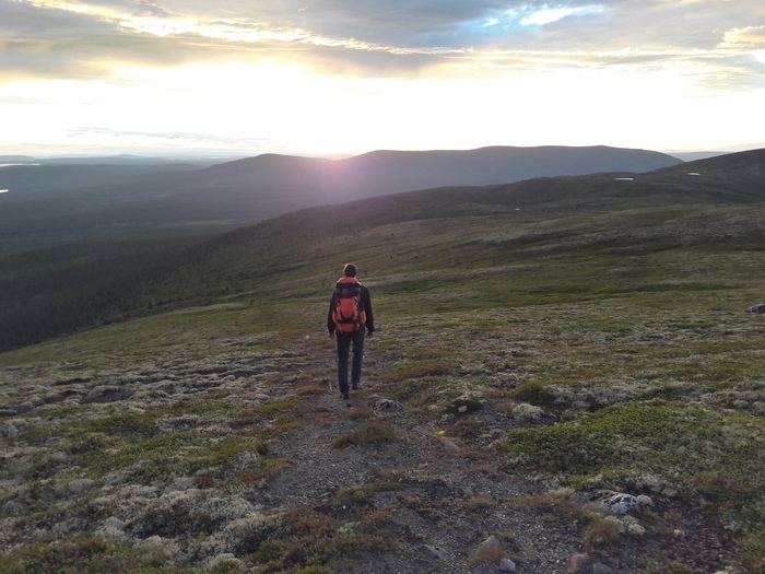 Чтобы жизнь нам мёдом не казалась (и чтобы успеть на поезд на следующий день) идти решили ночью, благо там сейчас полярный день и темно не становится, а сама вершина освещена солнцем постоянно. Плюс к этому, ни Лёша, ни тем более я ни разу на эту сопку не поднимались и как идти знали лишь приблизительно.