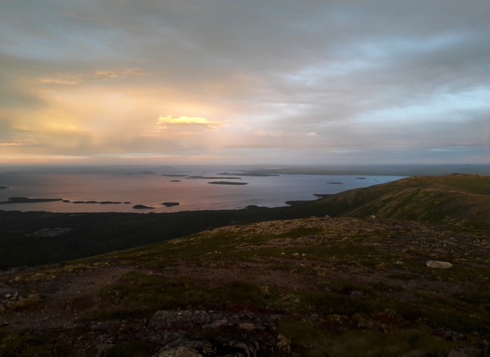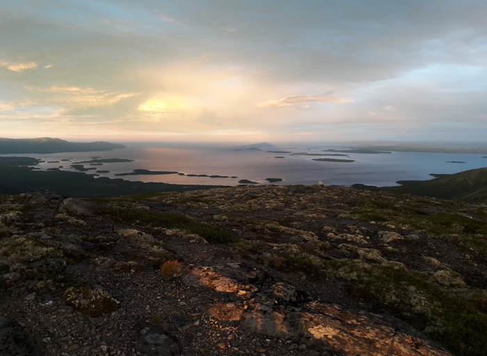 И вот, преодолев 1100 километров пути за 20 с небольшим часов в поезде, я оказался в Кандалакше. Ещё в поезде, когда проезжал Кандалакшский залив, я обратил внимание на невероятную красоту природы этого места. Из окна поезда сопки на фоне вод залива выглядели завораживающе.
