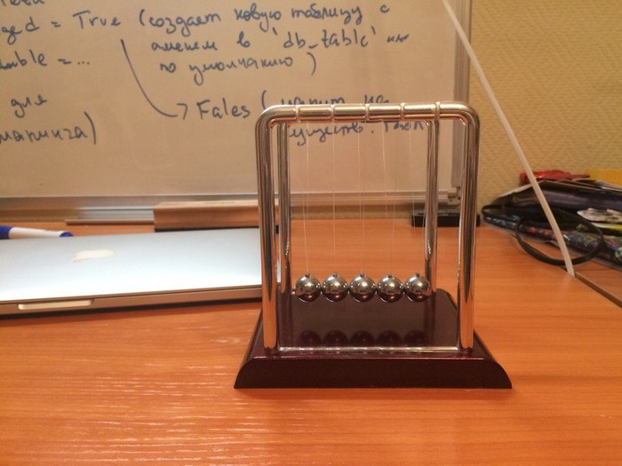 Итак. У меня есть розовый маркер. Не самый новый, с не самым популярным цветом. Просто розовый маркер. На следующей неделе, я начал ходить по общежитию в разные комнаты и предлагать обменяться. Люди сразу же приходили в легкое недоумение и сходу не могли ничего предложить. Но отозвался мой друг, с которым я обменялся на одну занимательную штуку – шары Ньютона (ты точно правильно понял, дорогой пикабушник?).