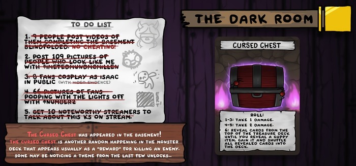 Кампания на Kickstarter по сбору средств для настольной игры The Binding of Isaac: Four Souls прошла пол пути (осталось 15 дней до завершения), но уже собрано $1,164,599. Напомню, что изначально требовалось собрать только $50 тыс. Интересным является и то, что дополнительные цели проекта не привязаны к сумме. Фанаты должны выполнять определенные условия в реальности, причем большинство уже сделано, например: