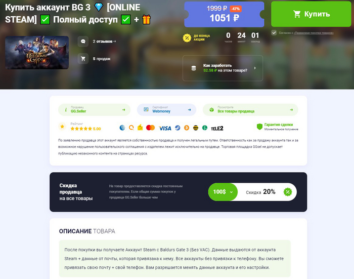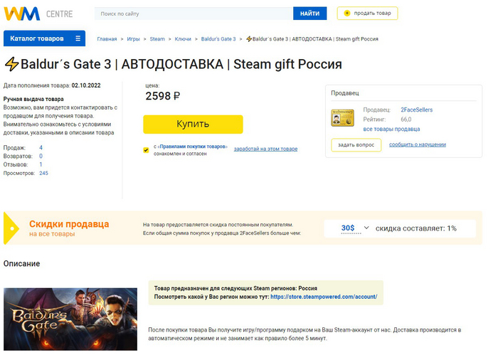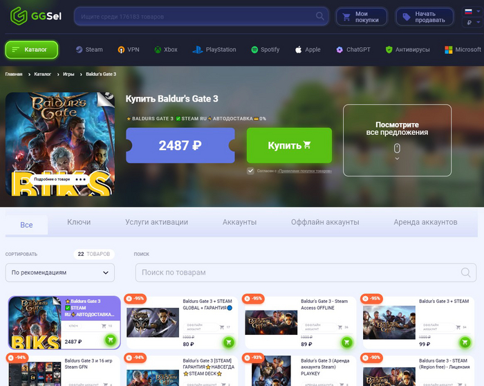 2. Покупка Baldur's Gate 3 с маркетплейсов