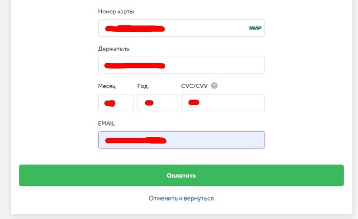 Выбираем наиболее удобный способ, затем заполняем необходимые данные и подтверждаем оплату.